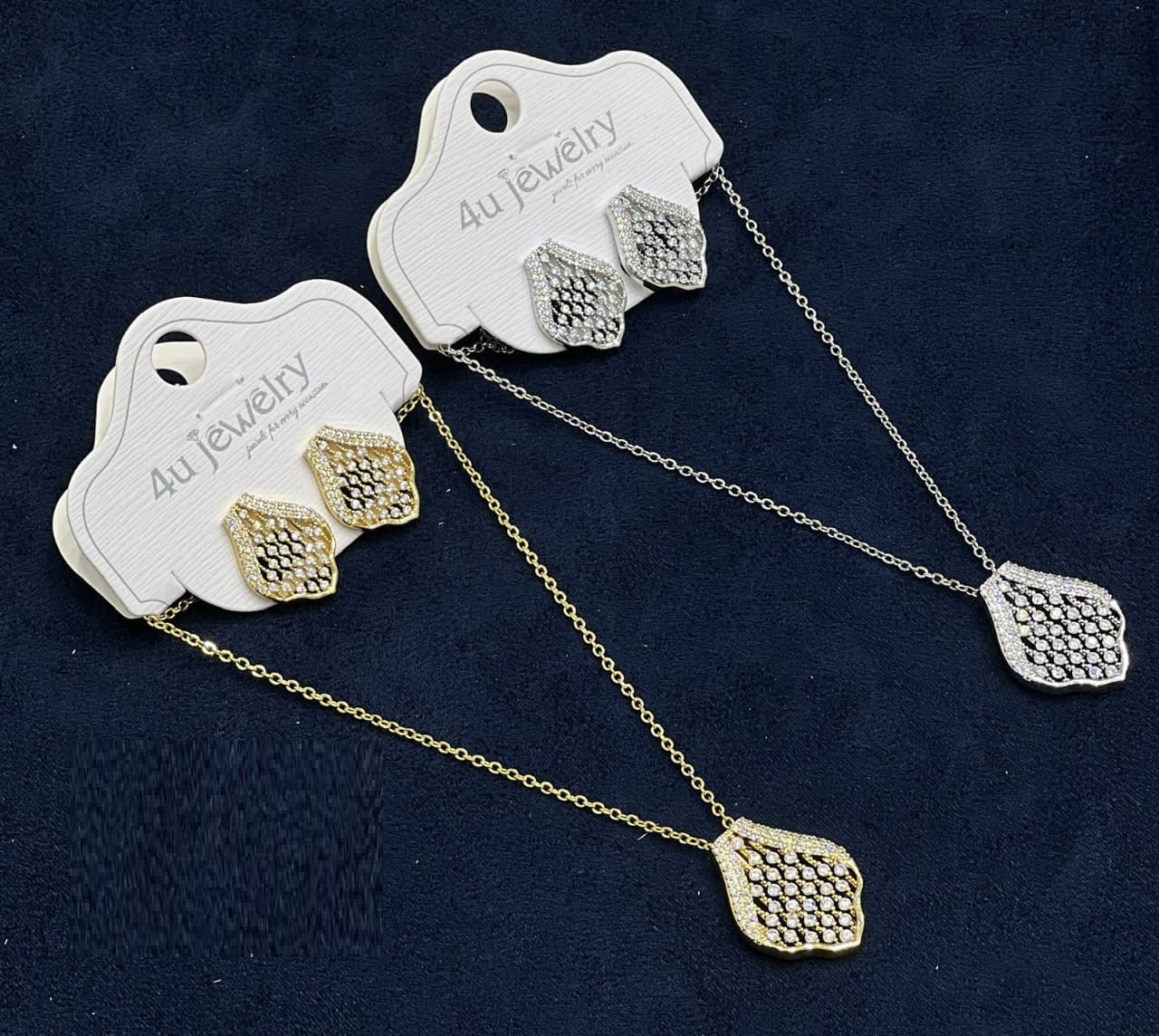 | محتويات المجموعة | قلادة واحدة وزوج واحد من الأقراط المرصعة |